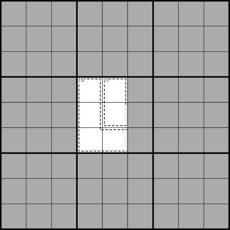 2. Digits in a quad circle appear in one of the four surrounding cells.