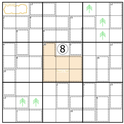 Begin by writing in the "tree" digits in boxes 3 and 7 from the previous puzzle.