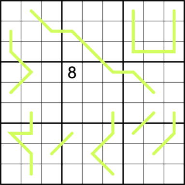 For sure. Let's look at the line starting in row 1 column 2 (r1c2) and ending in r5c8. For the sake of an example, assume it has the difference of 3 and the second digit (r2c3) is a 4. The digits next to the 4 on the line (r1c2 and r2c4) would then have to be 3 different from 4, i.e. 1 or 7. It's the solver's task to determine which difference each line has (and obviously which digits go in the cells).