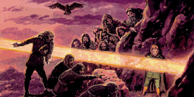 "Stand by the grey stone when the thrush knocks, and the setting sun with the last light of Durin's Day will shine upon the key-hole." ... Evening was coming on. Then suddenly when their hope was lowest a red ray of the sun escaped like a finger through a rent in the cloud. A gleam of light came straight through the opening into the bay and fell on the smooth rock-face...