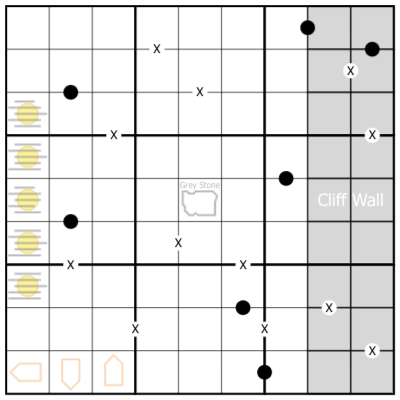 As the sun sets in the west, a shaft of light will break through the clouds from one of the marked cells in column 1 to form a straight line in that row, illuminating the key-hole in the cliff wall in column 8. Starting from column 1 and ending in column 8, digits along this shaft of light increase as they move towards the key-hole. The remaining four cloud cells contain odd digits.