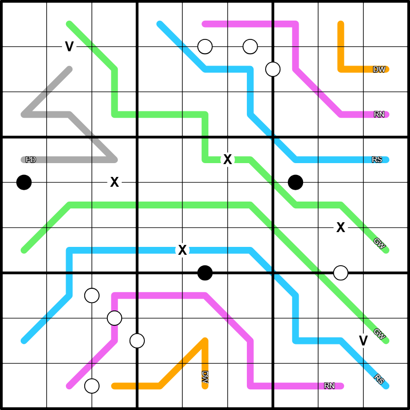 Not all Xs, Vs or dots are given.