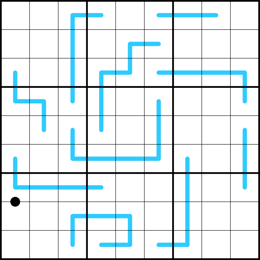 - Region Sum Lines: Box borders divide a line into segments with the same sum. Each line must have a different total sum of digits from all other lines.