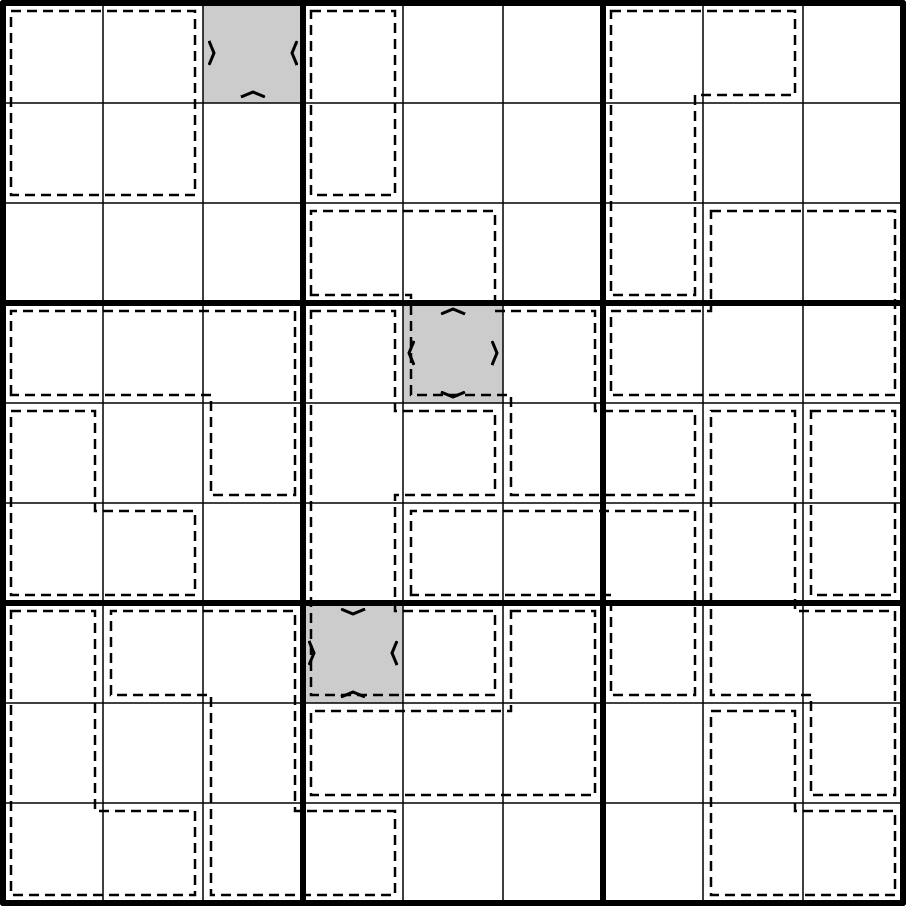 Cells with arrows pointing inwards are less than all adjacent cells. Cells with arrows pointing outwards are greater than all adjacent cells.