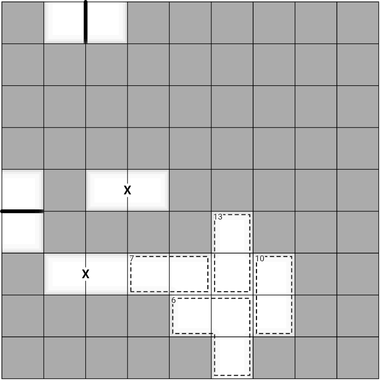 6. Black dots connect cells in a 2:1 ratio (0 is not allowed on a black dot).