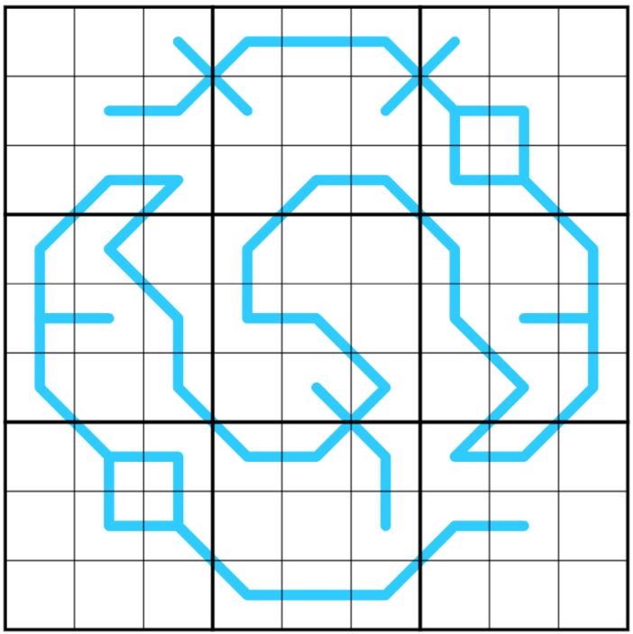 Region sum lines: Region borders divide lines into segments. Along a line, all segments have the same sum. Different lines may have different sums.