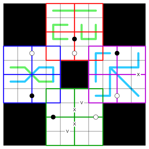 I had previously uploaded these as four separate Octoquadri puzzles, but despite my rigorous testing, it was pointed out to me that one of them (the Top/Red grid) wasn't unique. After trying out a few ways to fix this, I ended up keeping it as it was but having the four grids overlap, which I also asked DiMono to test just to make sure everything works now (Thank you very much DiMono!). I apologise to those who were frustrated by the previous version and I hope you enjoy the new and improved version :)