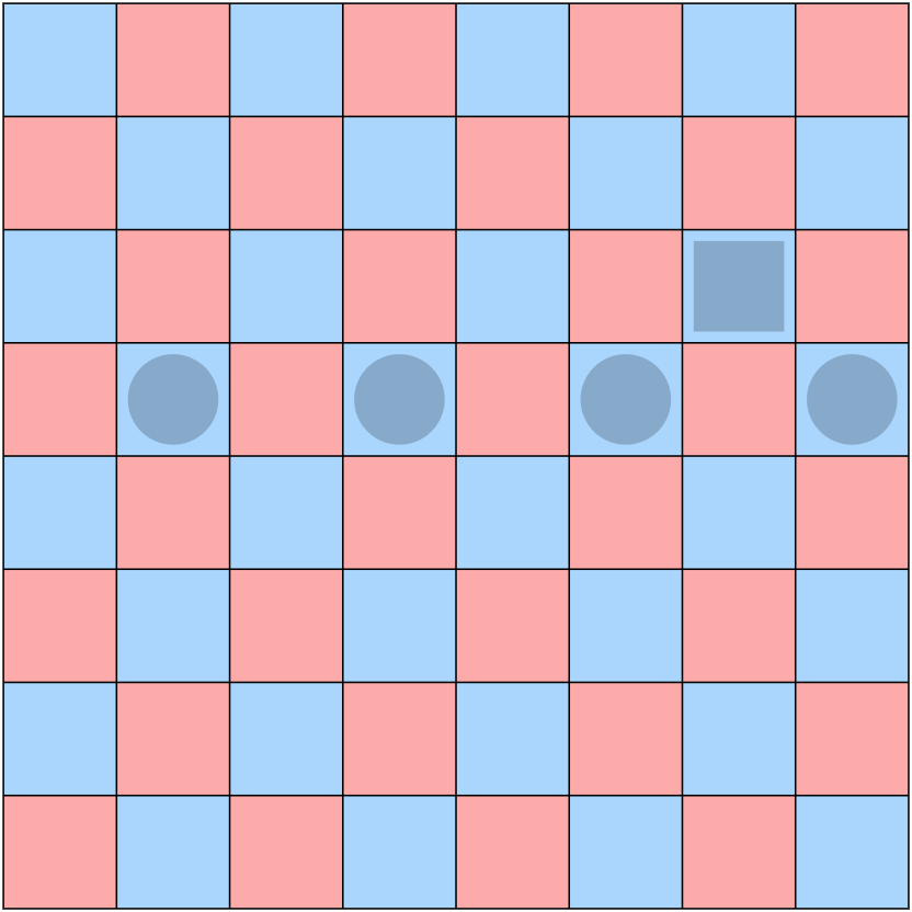 - Cells with a grey square contain an even digit. Cells with a grey circle contain an odd digit.