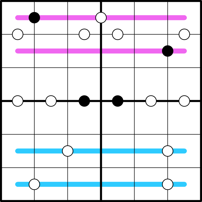 Renban: digits along a pink line form an unordered set of consecutive numbers.