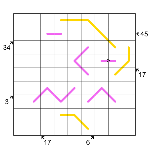 This was my entry for Turn 6 of The Skunkworks League, where the prompt was to make a 9x9 puzzle using exactly six numbers (3, 6, 17, 17, 34, 45) as clues. Could I have improved on it now that I'm free to use any clues I want? Maybe! But I'm pretty happy with how everything fits together, so I just thought I'd put it out as-is.