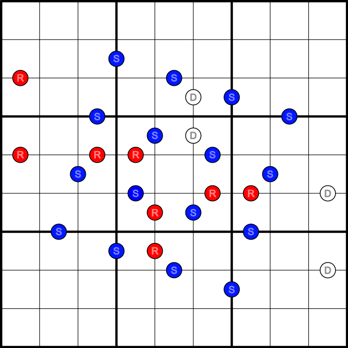 Rules: Normal Sudoku rules apply. Cells connected by a Sapphire (S) have a constant sum, by a Ruby (R) a constant ratio, and by a Diamond (D) a constant difference (the constants have to be deduced by the solver). Not all possible gems are necessarily given.