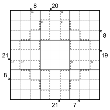 I think my favorite aspect of the solve was the break-in and how the two different killer clue types worked together to create interesting geometric restrictions. The different geometries had some interesting consequences & led to a very interesting solve experience. I also really liked how the killer sums were all straightforward/"simple" - meaning I could focus on "broader" ideas instead of trying to figure out the various combinations of valid digits for each given sum. The little killer clues really helped with that aspect of the solve.