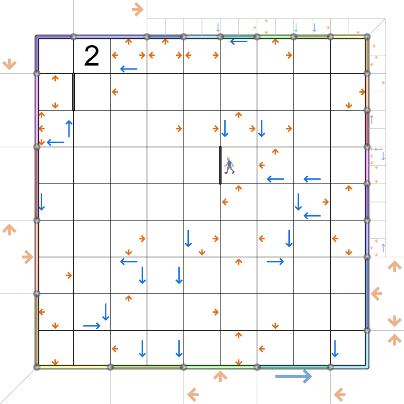 Fractal-wrapped grid: The grid wraps along its edge according to the coloring, and cells that wrap to one another across like-colored edges are considered adjacent. For example row 1, column 6 is adjacent to row 9 columns 7 and 8.