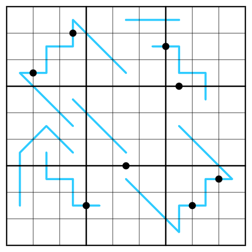 Sum Line: Box borders split blue lines into sections, and the digits on those sections must sum to the same value.