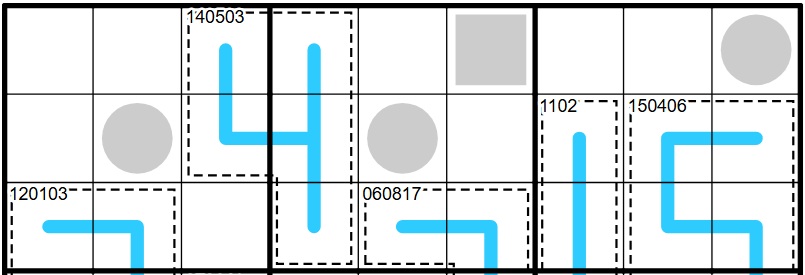 REGION SUM: Box borders separate blue lines into segments with the same sum.