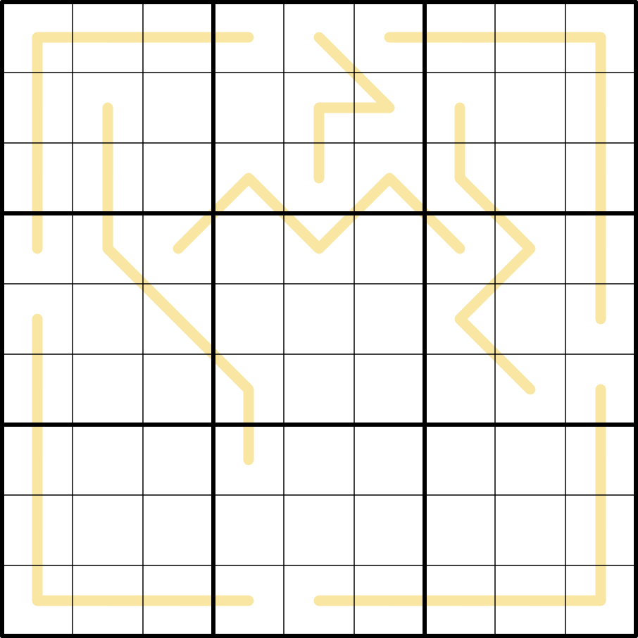 Normal sudoku rules apply. Each line has a cell such that digits on one side of the cell sum to N and digits on the other side sum to twice N, where N is the digit in the cell.