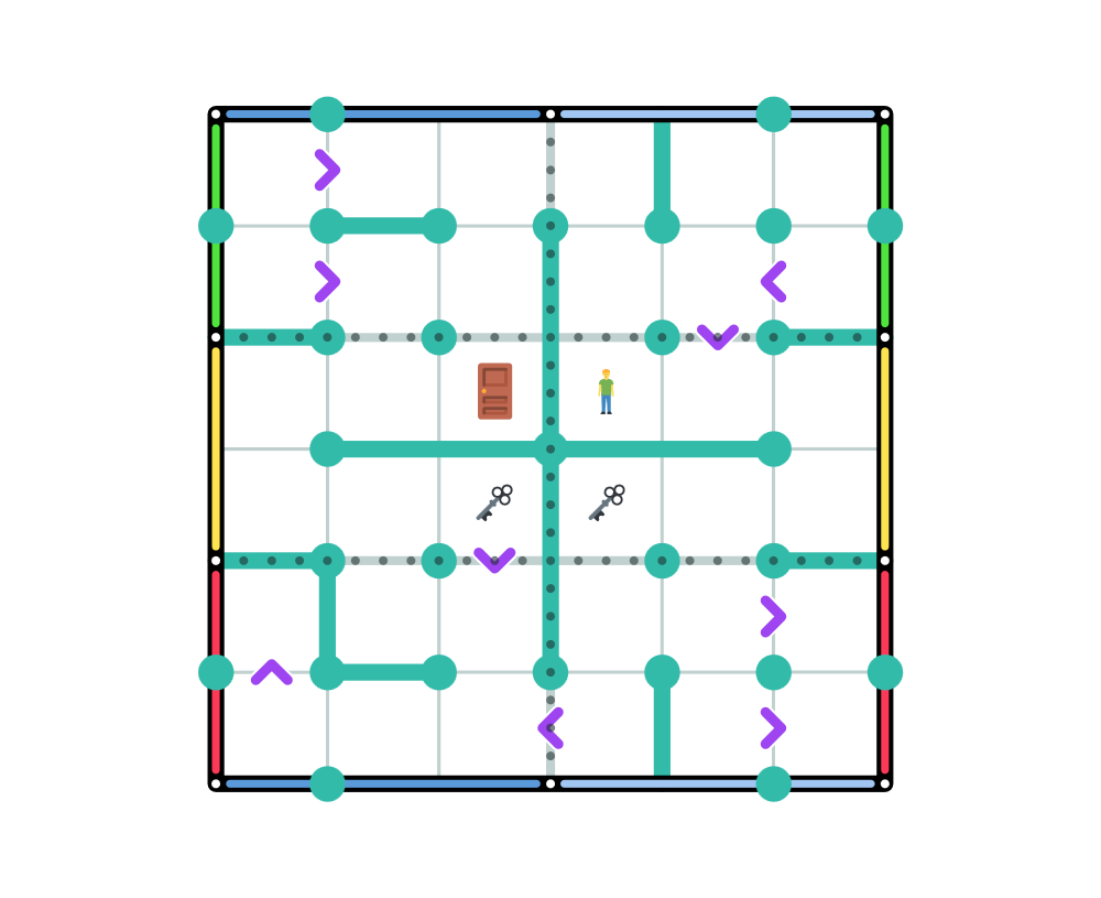 And as the voice keeps repeating its message, Marty feels a force that pushes him forward: he may only pass directly through a purple arrow if moving in the direction the arrow is pointing. An arrow always points to the smaller of the two digits it sits between.