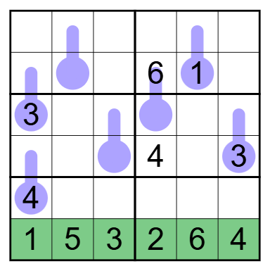 Thermometers: Digits must increase along the thermometers starting from the bulbs.