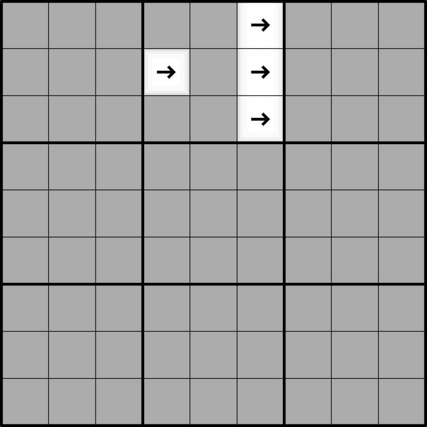 ARROWS : A digit on an arrow shows the number of circles in the indicated direction, which can be north, east, south or west.