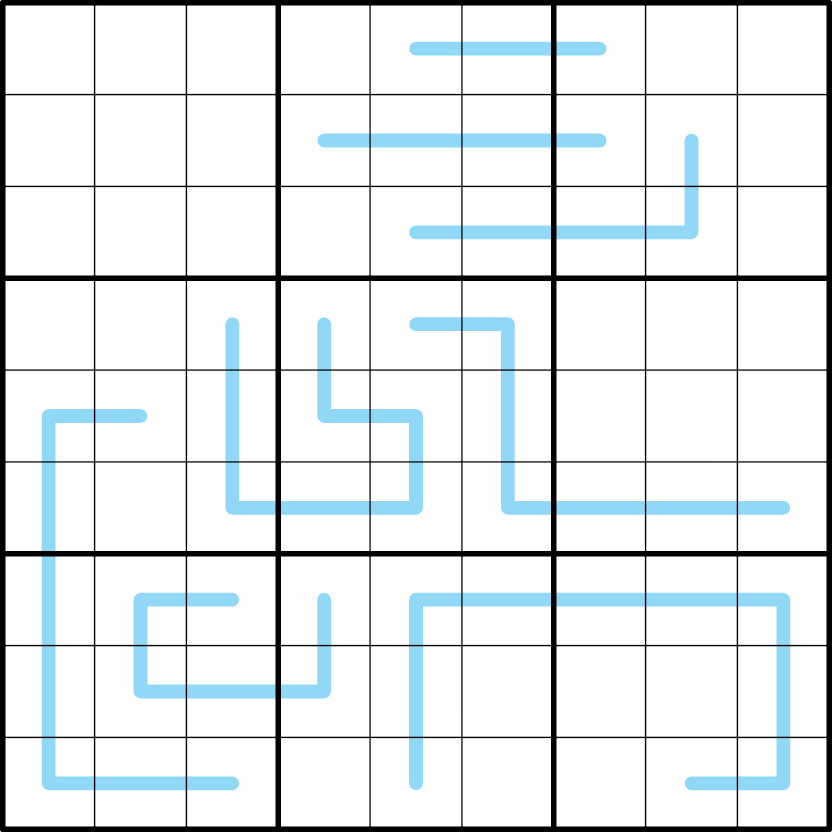 Modular lines: any three adjacent digits along those lines have different residues modulo 3 (i.e. one digit from {1,4,7}, one from {2,5,8}, and one from {3,6,9}).