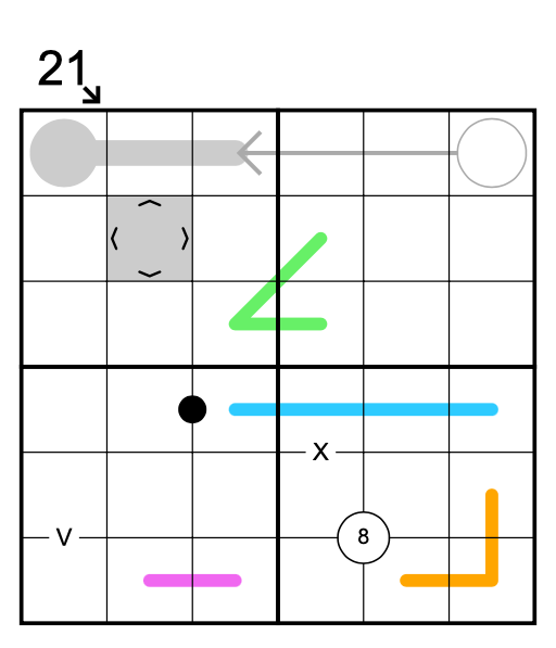 - A purple line contains a non-repeating consecutive set of digits in any order.