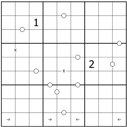 A white dot between two cells indicates that their digits are consecutive. (Not all white dots are given.)