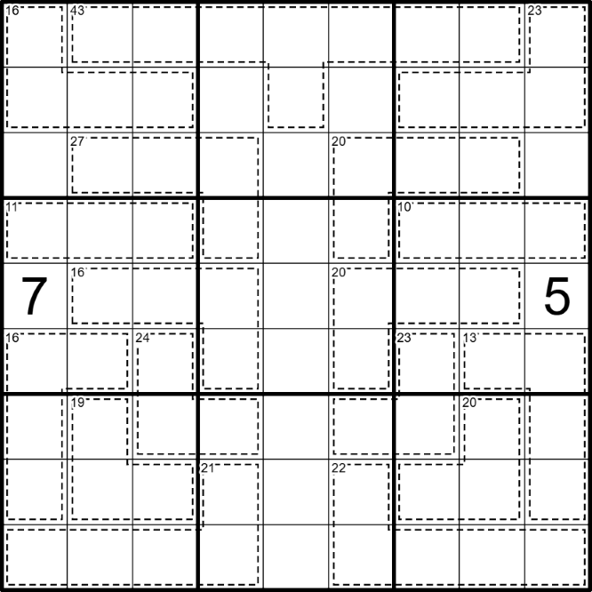 I loved the interaction between the 10 and 11 cages in row 4, which is resolved by the 13 cage in box 6, it took me by surprise but the logic is solid. Then it got significantly harder after that.