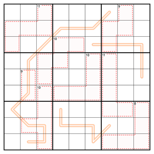 Rellik-Käfige: Alle Käfige sind Rellik-Käfige. Eine Kombination von einer oder mehreren Ziffern in einem Rellik-Käfig darf sich NICHT zu dem oben links angegebenen Wert addieren.