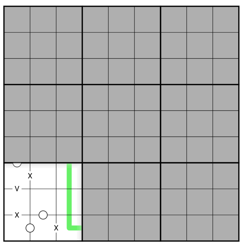 • An X between two cells means they add up to 10.