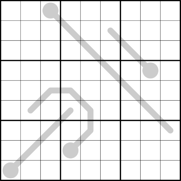 Sudoku: Fill every row, column and marked 3x3 box with the digits 1-9.