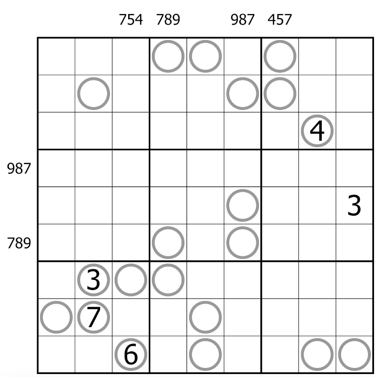 For example, if the digit contained within the circle is a 6, then no possible arrow starting from that cell can sum to 6.