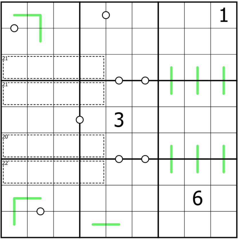 1) Es gelten die klassischen Sudoku-Regeln: