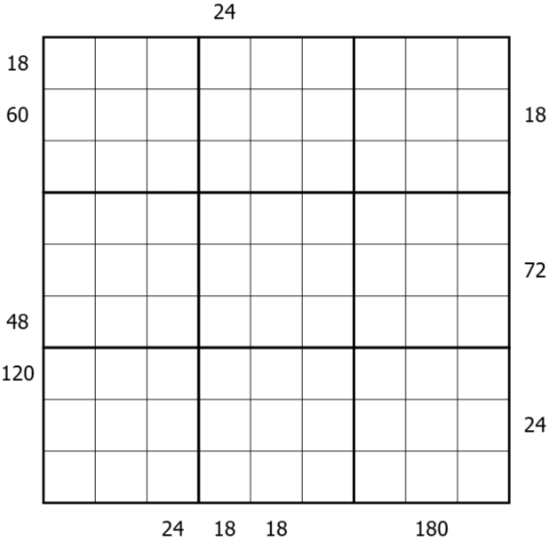 Dieses Rätsel ist von RockyRoer inspiriert, wobei sein Rätsel X-Summen und X-Produkte kombiniert. Ich wollte gerne zuerst reine X-Produkte haben, und in SVS #437 nächste Woche werde ich ebenfalls Summen und Produkte kombinieren.