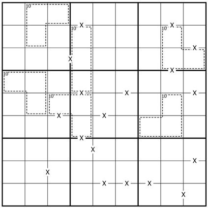 An X between two digits indicates they sum to 10.