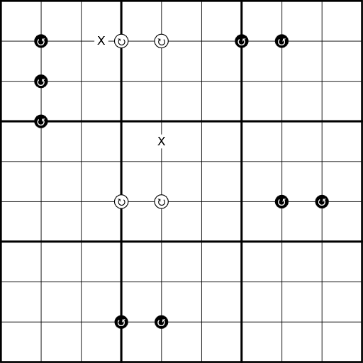 X Pairs: Cells separated by an X sum to 10. Not all X's are given.
