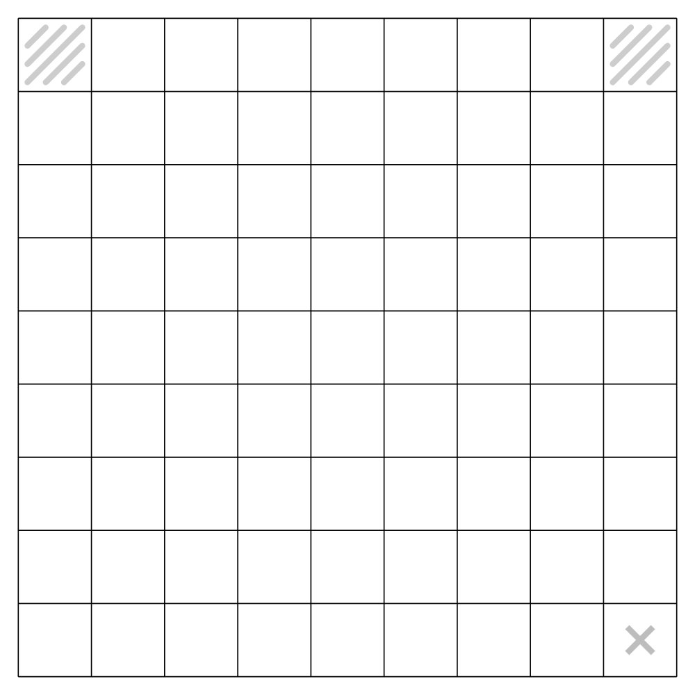 - Shade an orthogonally connected area of the grid. The lined cells are shaded, and the X is unshaded.
