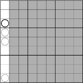 It is impossible to draw any straight horizontal arrows anywhere in the grid.