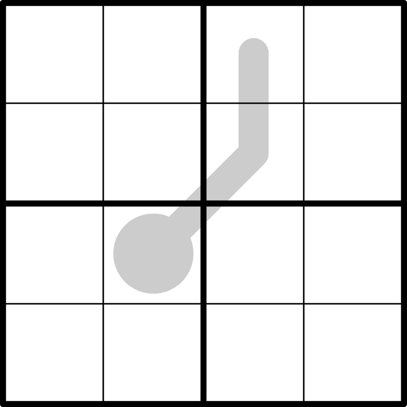 T-Spilled and X-Spilled (Custom Rule): All 4 interior cells of the 4x4 grid must satisfy both the T-spilled and X-spilled rules. A T-spilled cell's value must evenly divide the sum of its 4 orthogonal neighbors. An X-spilled cell's value must evenly divide the sum of its 4 diagonal neighbors.