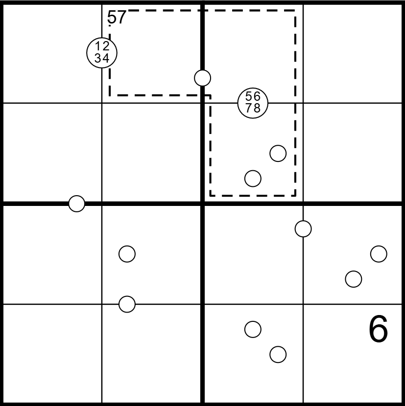 • Digits in large white circles must appear in the four surrounding cells.