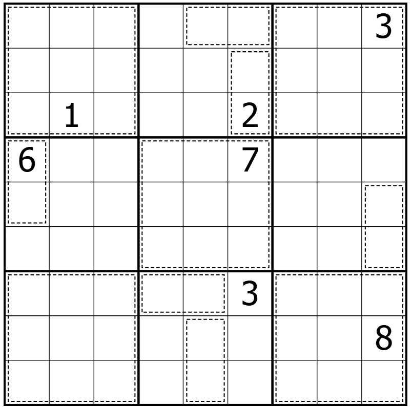 No digit in a network (cage) can be in the same position relative to its 3x3 box as in any other network (i.e. partial disjoint groups).