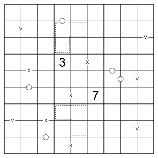 - XV Pairs: Digits separated by X sum to 10, digits separated by V sum to 5. Not all pairs are given / No negative constraint.