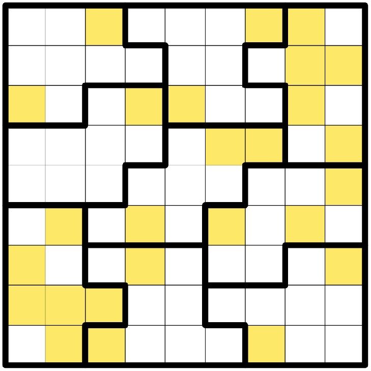 • Normal Jigsaw Sudoku rules apply (place the digits 1 to 9 without repetition in every row, column and region).