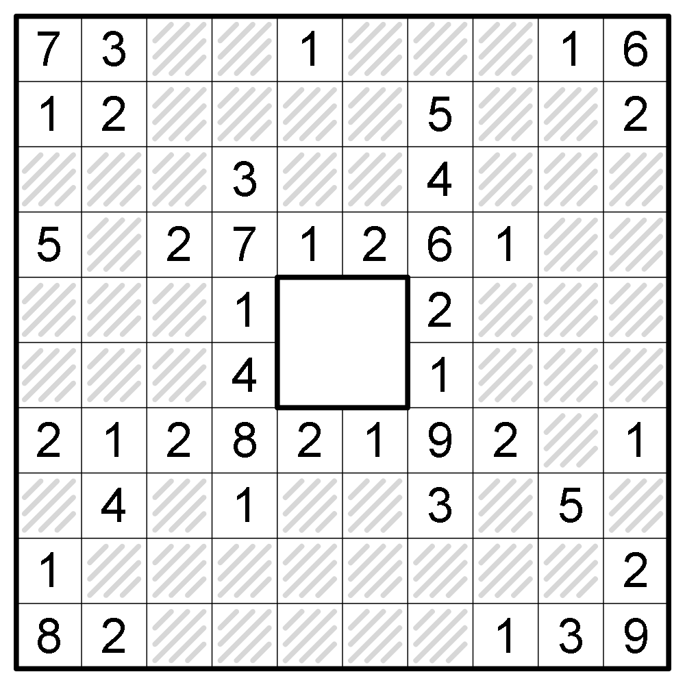 Lösungscode: The region size (i.e. largest digit in the region) of each cell in row 7