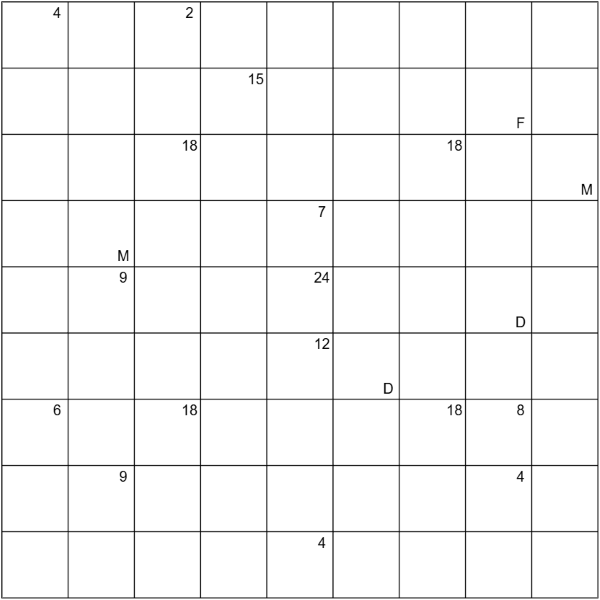 1. Chaos Construction: Das Raster muss in neun Regionen orthogonal verbundener Zellen unterteilt werden. Jede Zeile, Spalte und Region muss die Ziffern 1 bis 9 jeweils einmal enthalten.