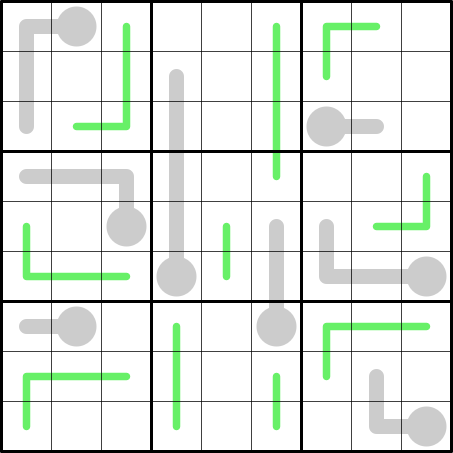 • normal Sudoku: Put the digits 1-9 once in each row, column and box.