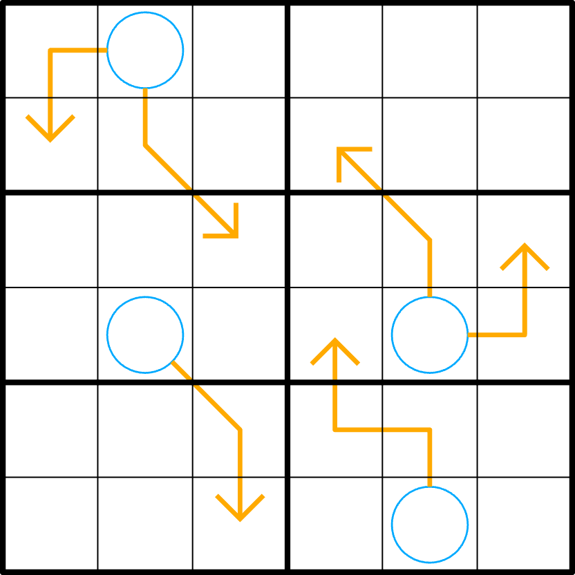 The sum of the digits along an arrow is equal to the digit in the connected circle.