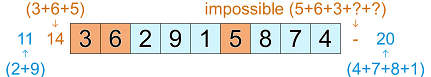 • X-sums: clues outside the grid give the sum of the first X digits in that row or column, where X is the first digit seen from the direction of the clue.