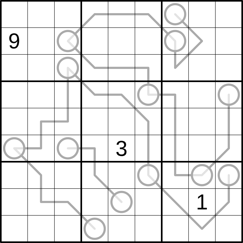 • Normal Sudoku rules: Place the digits 1-9 in each row, column and box, without repeats.