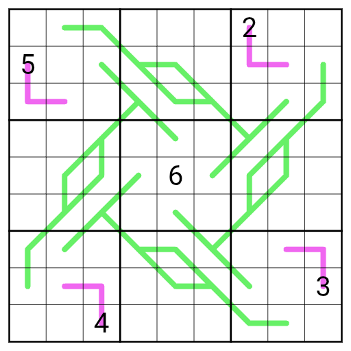 Renban lines: Digits along a purple Renban line form a set of consecutive digits in some order.