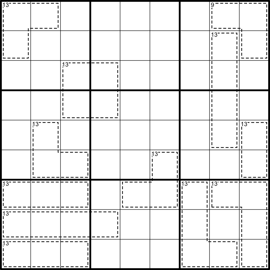 Digits in a cage do not repeat (including 1 and 3) and sum to the total shown in the top left corner.